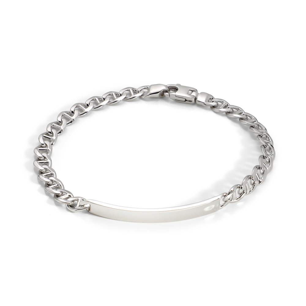 The classic Anchor i.d. bracelet, hand made in Tuscany by Saturno. Featuring superb mirror polishing and fully hallmarked in the UK, the item is rhodium plated to prevent tarnishing.