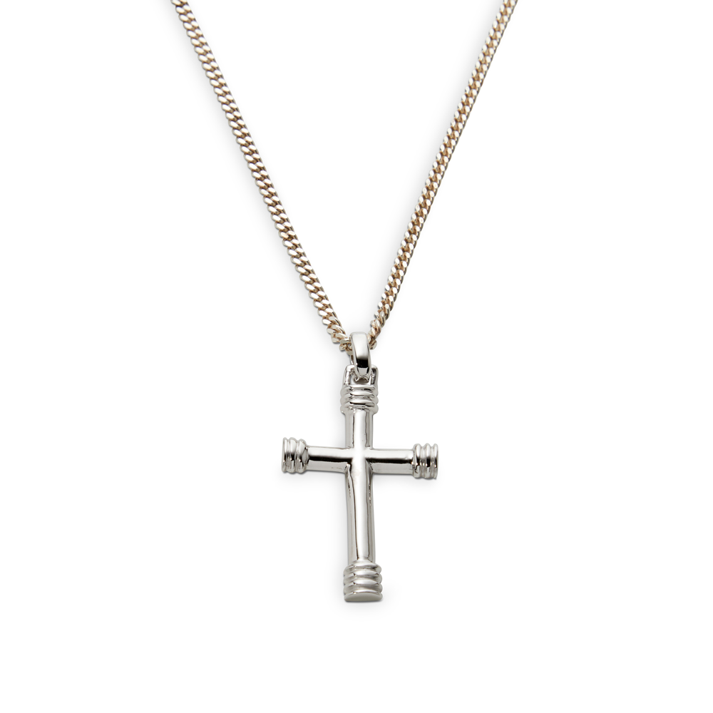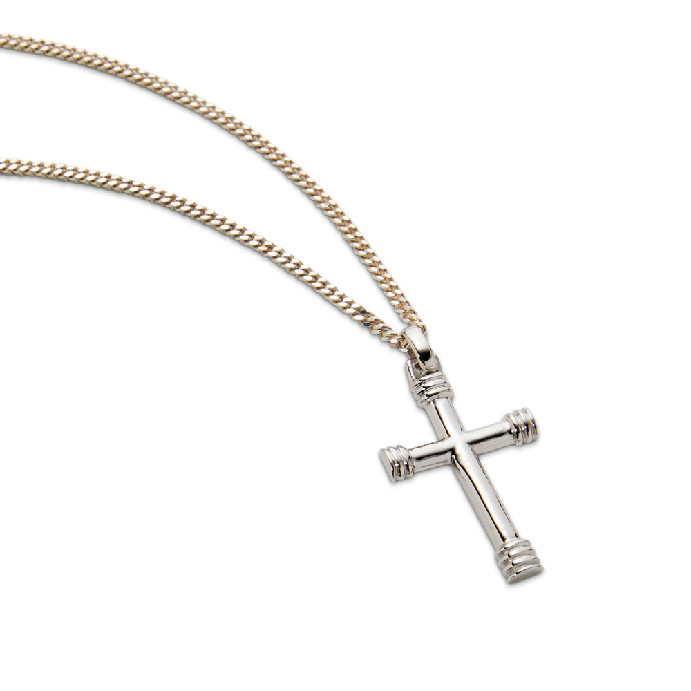Cross Pendant Ribbed – Rhodium