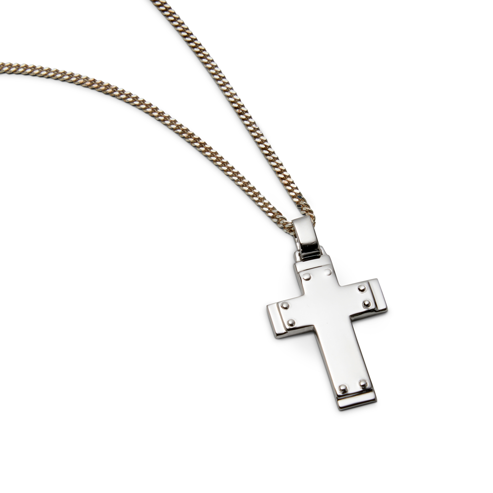 The screw cross pendant is fabulous quality and a real statement piece. Our Saturno pendants come with full UK hallmarks and have been rhodium plated to prevent the silver from tarnishing.