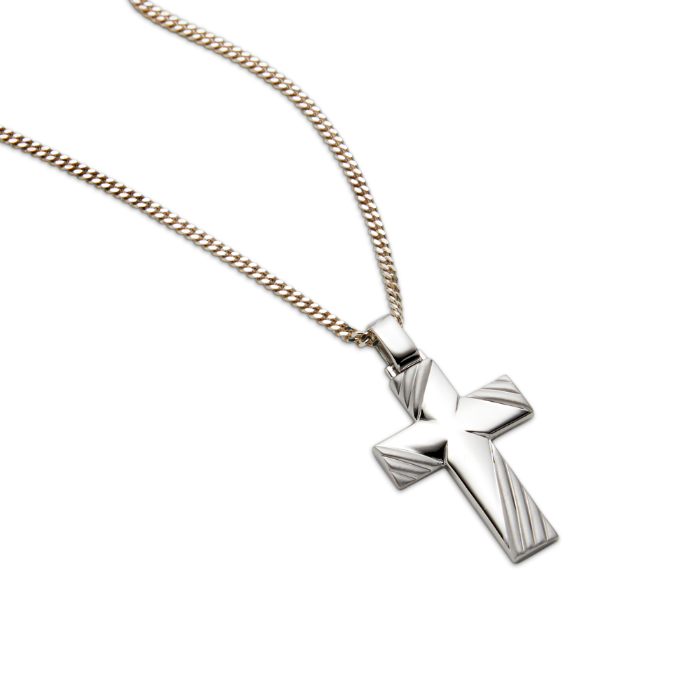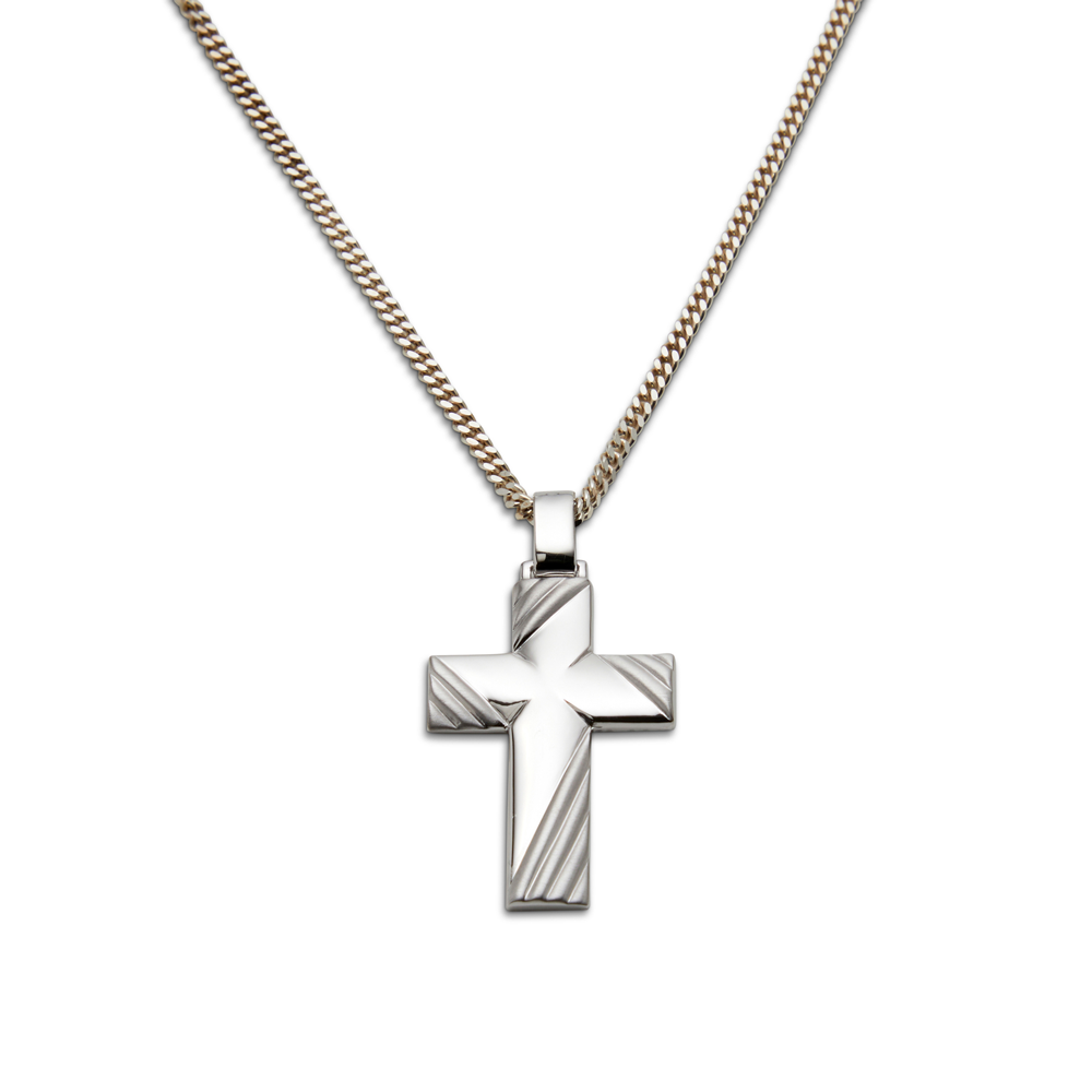 Amazing contrasting of brush and mirror polishing make this pendant highly unique. Made in sterling silver, the piece carries full English hallmarks and is rhodium plated to prevent tarnishing.