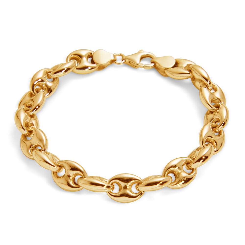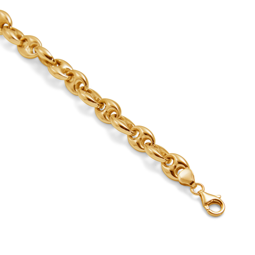 Our Cushioned Marine bracelet looks incredible with a 24ct gold plated finish. Made in hallmarked sterling silver from quality hollow chain, the quality of this bracelet is second to none.