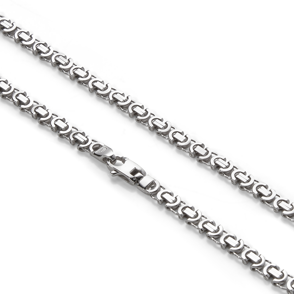 The eye catching Etruscan necklace, handmade by Saturno is exceptional quality. Carrying full English hallmarks, the necklace is available in a choice of sizes and has a rhodium plated finish to prevent tarnishing.