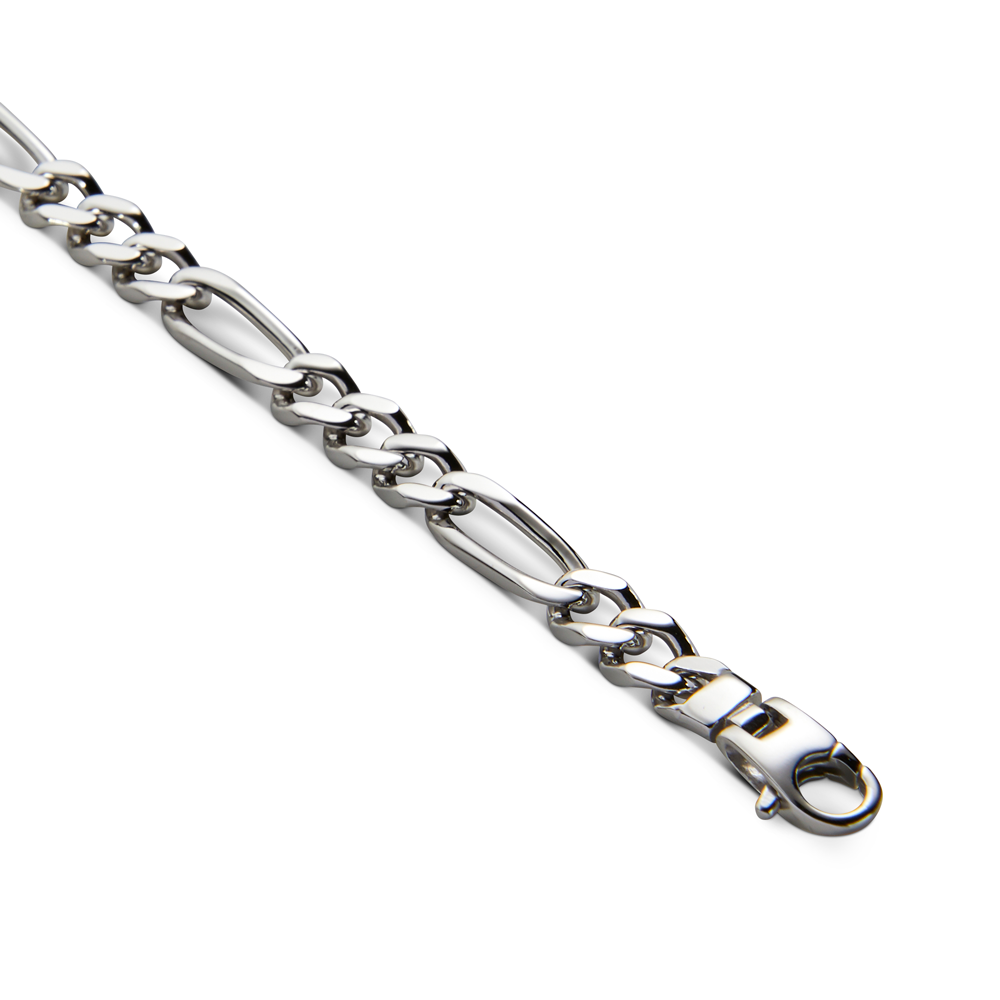 There are many versions of the Figaro chain on the market, but few of the quality of Saturno. Hand finished in sterling silver, the bracelet carries full UK hallmarks and is rhodium plated to prevent the silver from tarnishing.