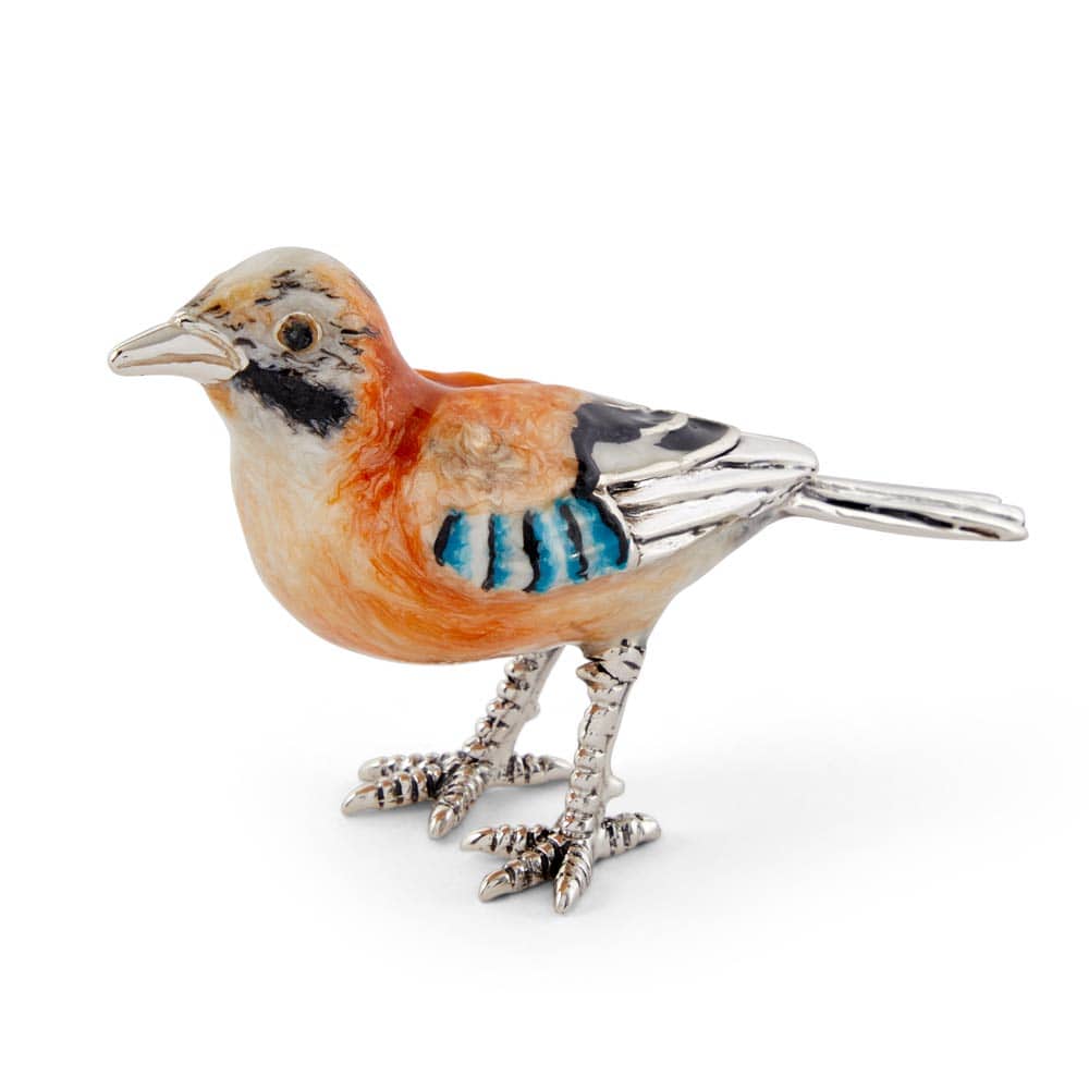This accurate depiction of a sterling silver jay bird showcases a colourful mix of pink and brown with a slightly paler underbelly, and a striking blue and black stripe on it’s wings. Although bright in colour, jay birds are actually quite difficult to see, however its screaming call usually lets you know when one is nearby! This piece has been handmade by the artisans of Saturno from the initial model through to the hand painted enamel. The item has been lacquered to provide a protection against tarnishing and is supplied in a luxury gift box. All of the Saturno pieces carry a full UK hallmark, this is your guarantee that the piece is .925 sterling silver. From time to time clean with a soft cloth to keep pristine.