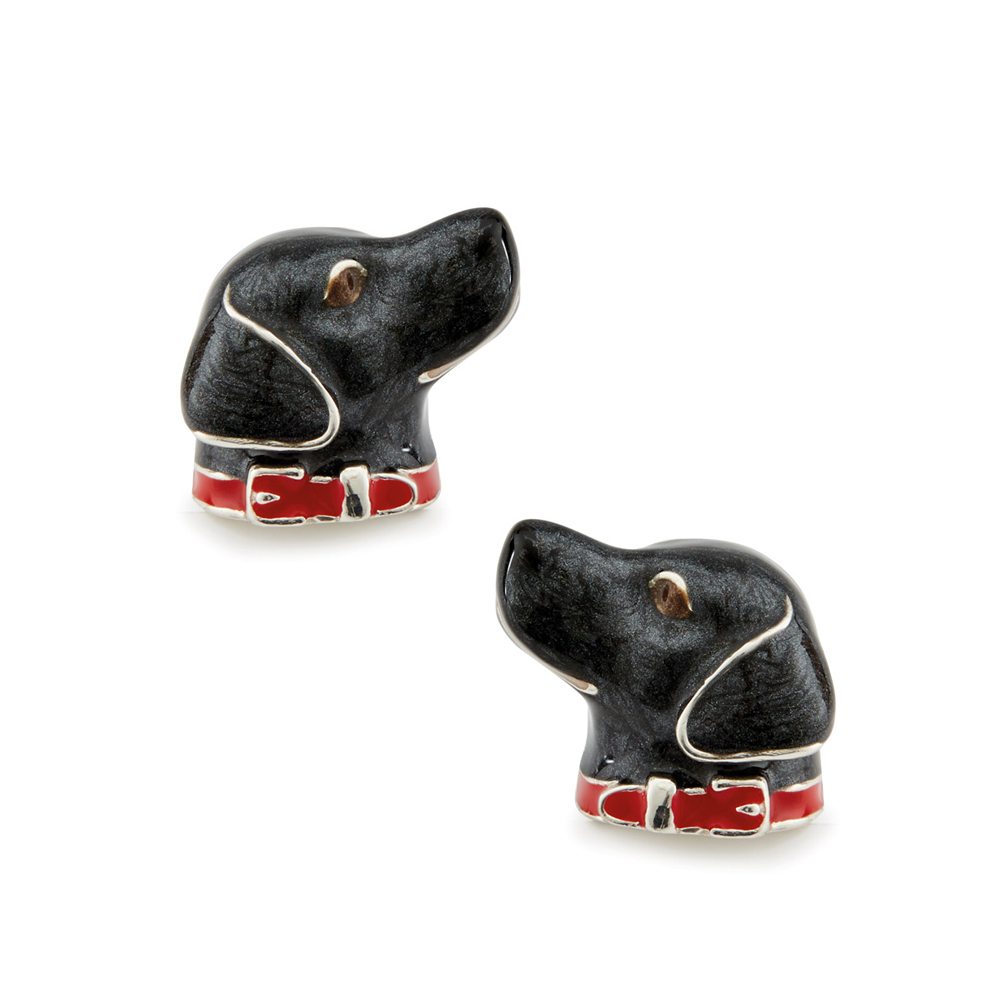 The artisans at Saturno have managed to bring these black Labrador cufflinks to life with incredible facial detailing and a little red dog collar. These beautiful silver and enamel items have strong post back fittings and are hallmarked in the UK. These make for highly unique gifts and are supplied in smart gift boxes.