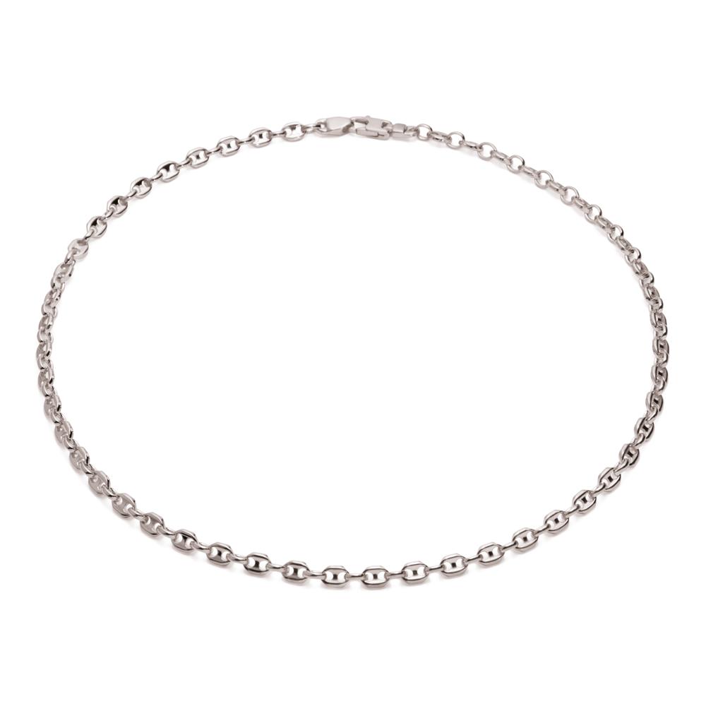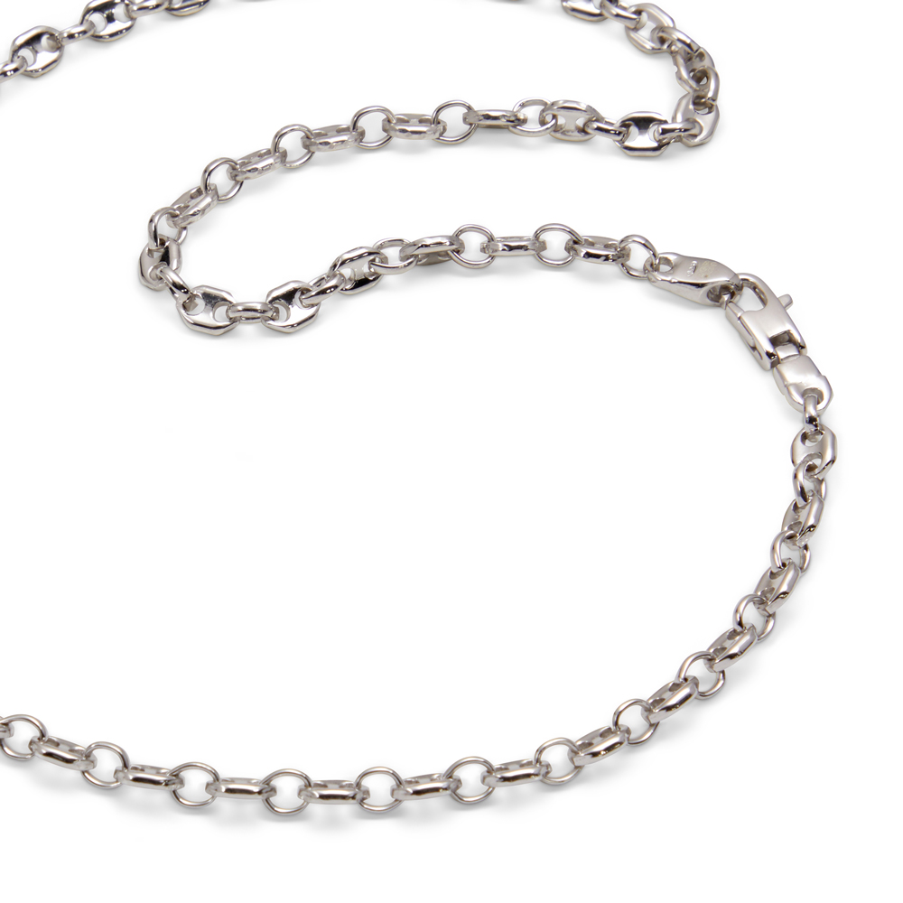 The Marine bracelet has been an instant best seller for us, and we are delighted to now offer the same chain in a necklace. This is a completely hand made chain by Saturno, and features a rhodium plated finish to prevent tarnishing.