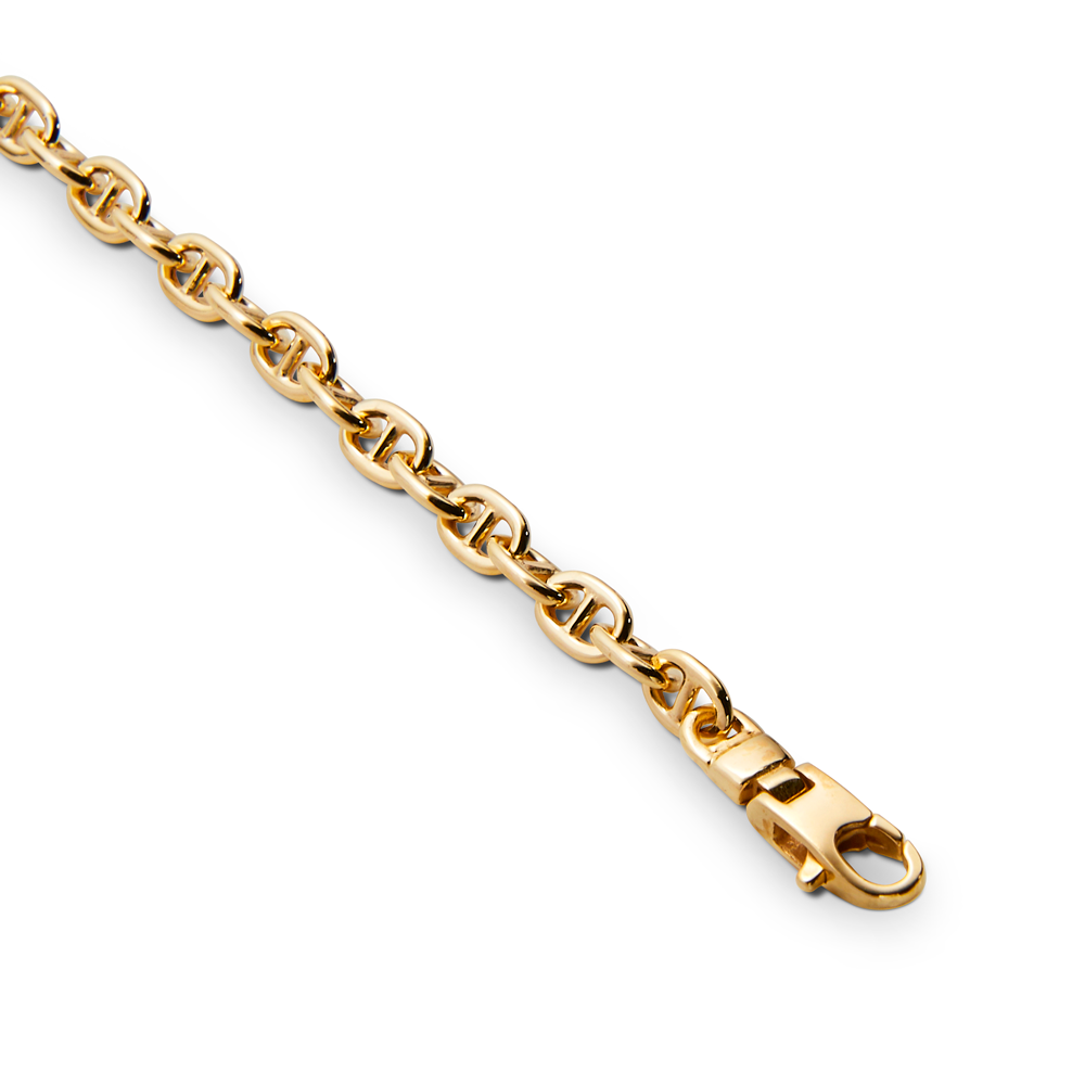The beautiful detailing of the Rolo cross bar chain is accentuated by a coating of 24ct gold plate on this bracelet. Hallmarked in the UK, the item is manufactured by hand by the artisans of Saturno in their Tuscan factory.