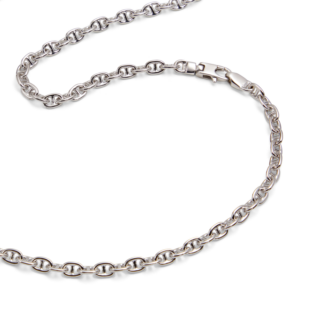 The Rolo Cross Bar necklace is made from the finest chain available, and features Saturno’s unrivalled mirror finishing. Available in a choice of 2 lengths, each piece is hallmarked in the UK and has been rhodium plated to prevent tarnishing.