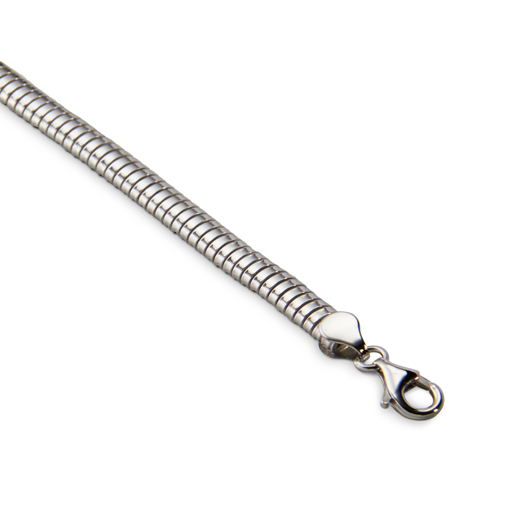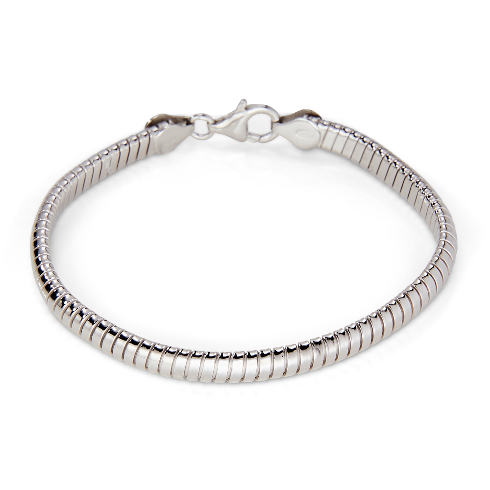 The Tubogas bracelet is made from a unique chain which is both flexible and rigid at the same time. The hallmarked sterling silver bracelet is 19cm long and is rhodium plated, to prevent the silver from tarnishing.