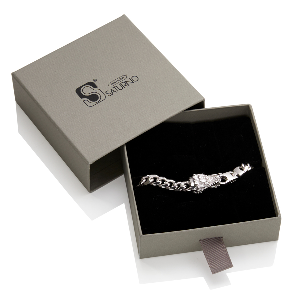 Our Tubogas necklace, is made from a unique chain which is both flexible and rigid at the same time. The Saturno necklace is made from sterling silver and is accentuated with 24ct hard gold plating.