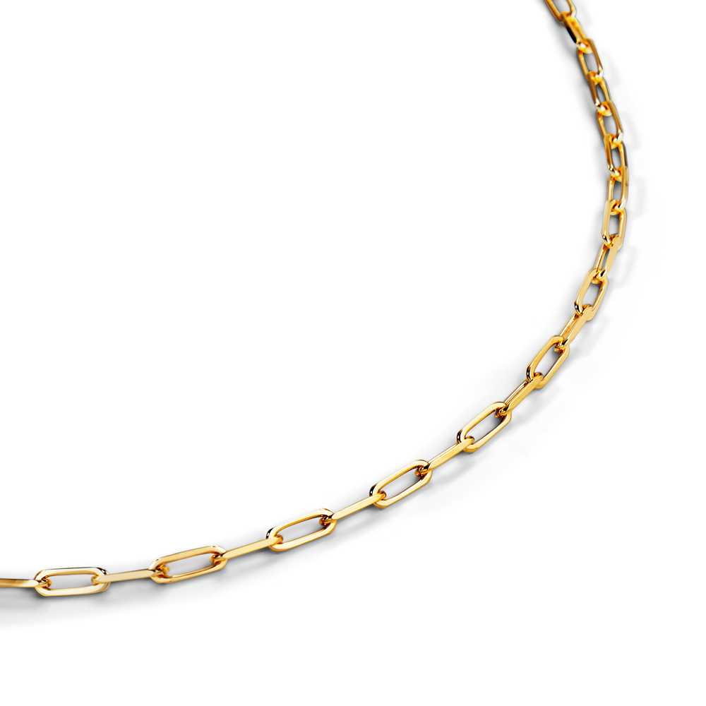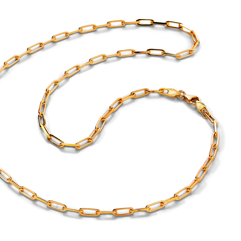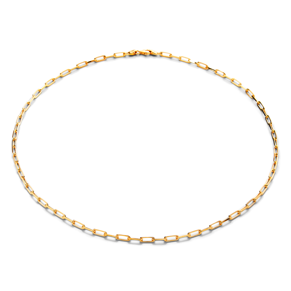Our gold-plated Volt necklace, made in the paper clip style of chain can be worn solo or stacked. Available in a range of lengths, the necklace is made from sterling silver with a layer of 24ct hard gold plate.